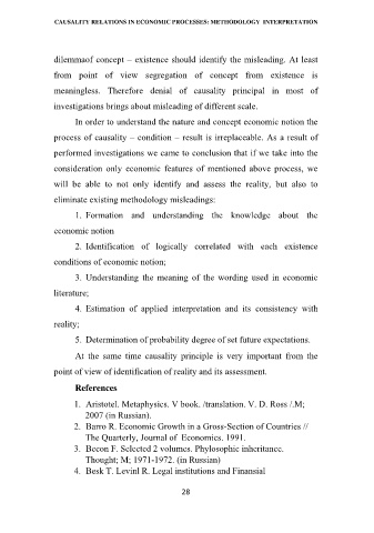 CAUSALITY RELATIONS IN ECONOMIC PROCESSES: METHODOLOGY INTERPRETATION