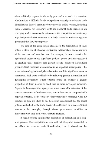 THE ROLE OF COMPETITION ADVOCACY IN TRANSITION AND DEVELOPING ECONOMIES