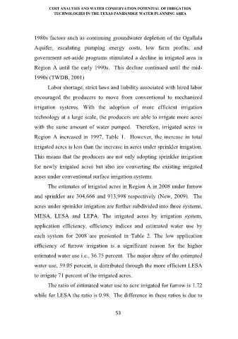 MESA, LESA and LEPA. The irrigated acres by irrigation system,