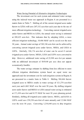 irrigated acres to MESA results in water savings of 121,274 acre-feet