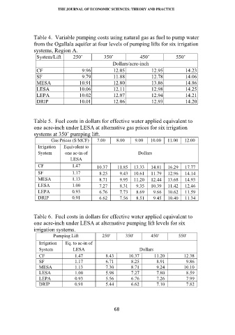 Table 4. Variable pumping costs using natural gas as fuel to pump water