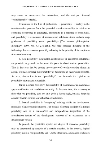 1. Real possibility: Realization conditions of an economic occurrence