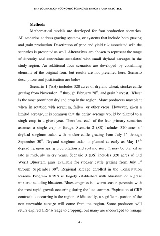 Scenario 1 (WH) includes 320 acres of dryland wheat, stocker cattle