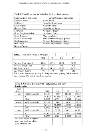 Table 3. Net Steer Revenue with High, Normal and Low