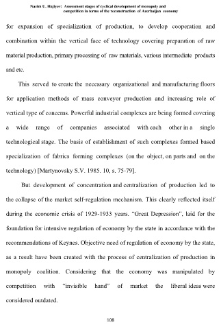 Nazim U. Hajiyev: Assessment stages of cyclical development of monopoly and