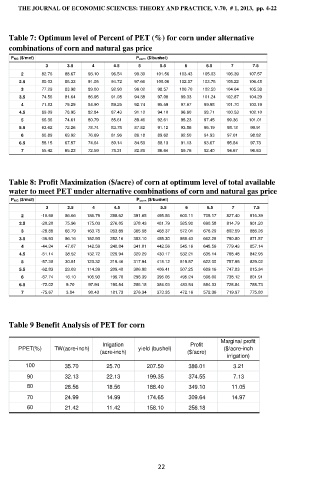 Table 7: Optimum level of Percent of PET (%) for corn under alternative