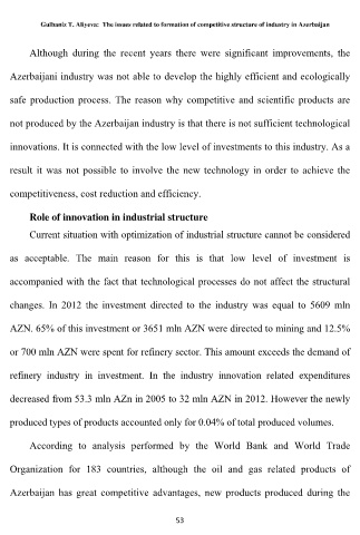 Gulbaniz T. Aliyeva: The issues related to formation of competitive structure of industry in Azerbaijan