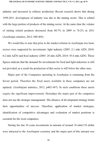 updated. (Azerbaijani statistics, 2012, p482-487). In such conditions these assets