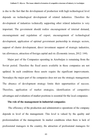 Gulbaniz T. Aliyeva: The issues related to formation of competitive structure of industry in Azerbaijan