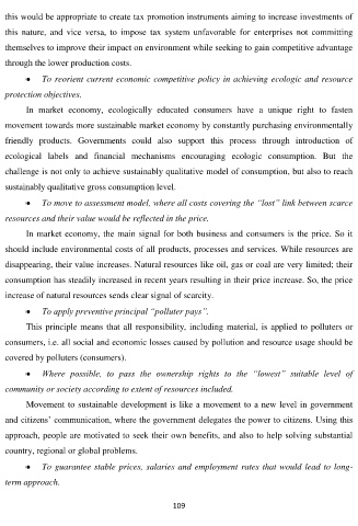 consumers, i.e. all social and economic losses caused by pollution and resource usage should be
