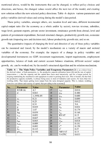 Table -6- : The Main Policy Variables and Exogenous Parameters [It is an evident from