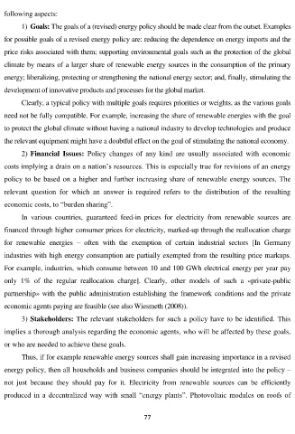 1) Goals: The goals of a (revised) energy policy should be made clear from the outset. Examples