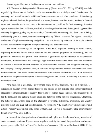 V.L. Tambovtsev brings need of EB to certainty [Tambovtsev V.L. 2013 p.160-168], which is