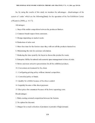 THE JOURNAL OF ECONOMIC SCIENCES: THEORY AND PRACTICE, V.71, # 1, 2014, pp. 120-126
