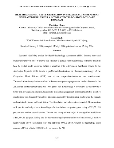 THE JOURNAL OF ECONOMIC SCIENCES: THEORY AND PRACTICE, V.71, # 1, 2014, pp. 127-139