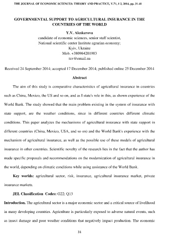 THE JOURNAL OF ECONOMIC SCIENCES: THEORY AND PRACTICE, V.71, # 2, 2014, pp. 31-41