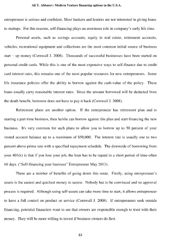 start – up money (Cornwall J. 2008). Thousands of successful businesses have been started on