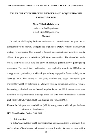 THE JOURNAL OF ECONOMIC SCIENCES: THEORY AND PRACTICE, V.72, # 1, 2015, pp. 61-94