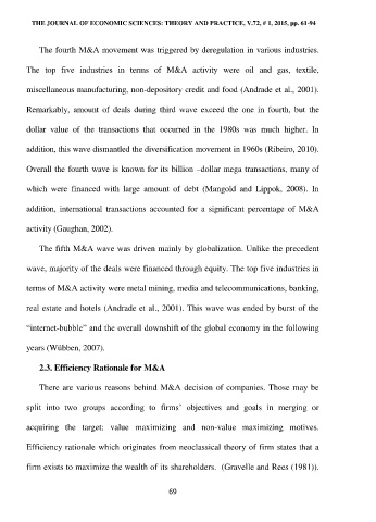 THE JOURNAL OF ECONOMIC SCIENCES: THEORY AND PRACTICE, V.72, # 1, 2015, pp. 61-94