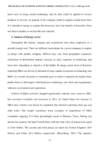 THE JOURNAL OF ECONOMIC SCIENCES: THEORY AND PRACTICE, V.72, # 1, 2015, pp. 61-94