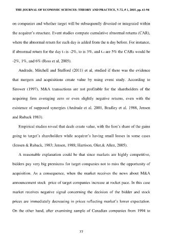 the acquirer‘s structure. Event studies compute cumulative abnormal returns (CAR),