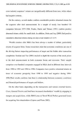 returns of acquirer firms. Some researchers state that economic conditions are one of