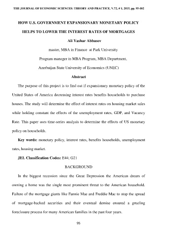 THE JOURNAL OF ECONOMIC SCIENCES: THEORY AND PRACTICE, V.72, # 1, 2015, pp. 95-102