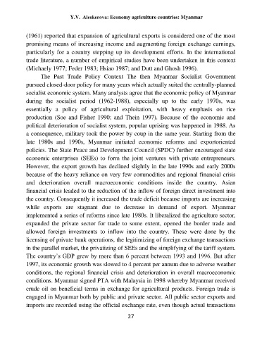 Y.V. Aleskerovа: Economy agriculture countries: Myanmar