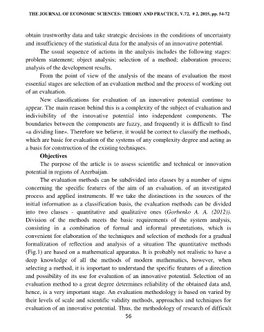 THE JOURNAL OF ECONOMIC SCIENCES: THEORY AND PRACTICE, V.72, # 2, 2015, pp. 54-72