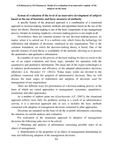 A.D.Huseynova, O.I.Mazanova: Model of a evaluation of an innovative capital of the