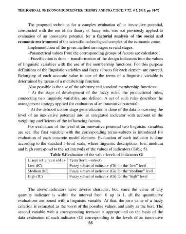 THE JOURNAL OF ECONOMIC SCIENCES: THEORY AND PRACTICE, V.72, # 2, 2015, pp. 54-72