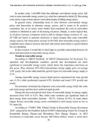 THE JOURNAL OF ECONOMIC SCIENCES: THEORY AND PRACTICE, V.72, # 2, 2015, pp. 73-86