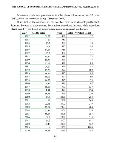 THE JOURNAL OF ECONOMIC SCIENCES: THEORY AND PRACTICE, V.72, # 2, 2015, pp. 73-86