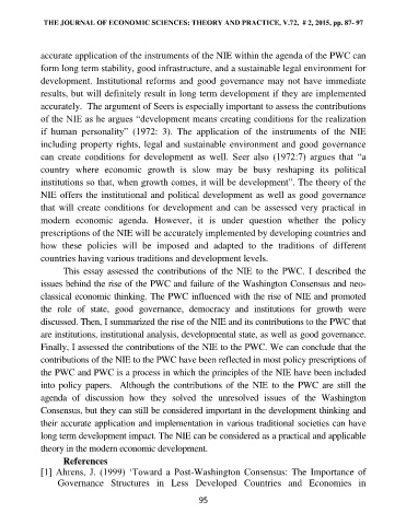 THE JOURNAL OF ECONOMIC SCIENCES: THEORY AND PRACTICE, V.72, # 2, 2015, pp. 87- 97