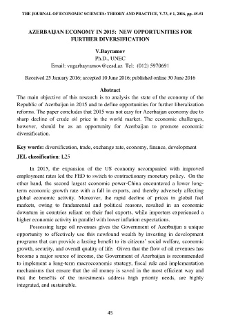 reforms. The paper concludes that 2015 was not easy for Azerbaijan economy due to