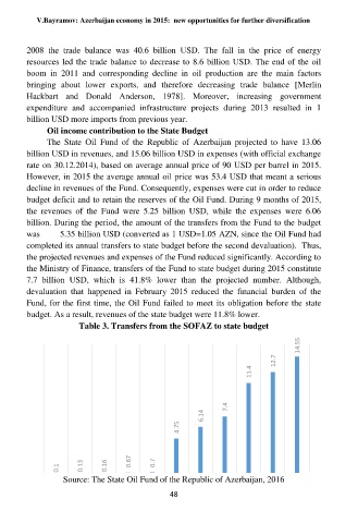 Table 3. Transfers from the SOFAZ to state budget