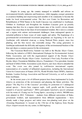 THE JOURNAL OF ECONOMIC SCIENCES: THEORY AND PRACTICE, V.73, # 1, 2016, pp. 64-77