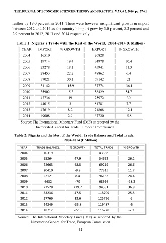 Table 1: Nigeria’s Trade with the Rest of the World, 2004-2014 (€ Million)