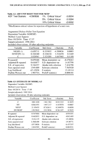 Table A2: ADF UNIT ROOT TEST FOR NEXP