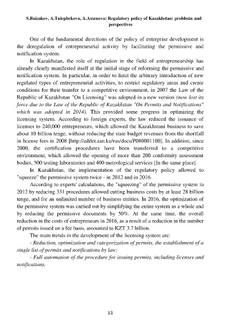 S.Baizakov, A.Tulepbekova, A.Assenova: Regulatory policy of Kazakhstan: problems and