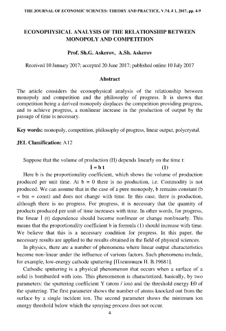THE JOURNAL OF ECONOMIC SCIENCES: THEORY AND PRACTICE, V.74, # 1, 2017, pp. 4-9