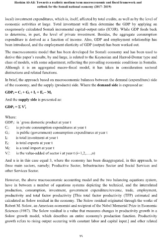 exogenously calculated Somali incremental capital-output ratio (ICOR). While GDP feeds back