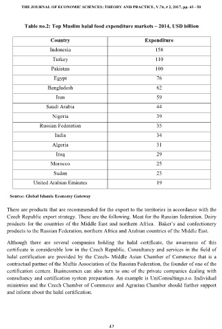Table no.2: Top Muslim halal food expenditure markets – 2014, USD billion