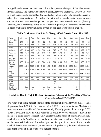 Table 5: Mean of Absolute % Changes Each Month from 1971-1992