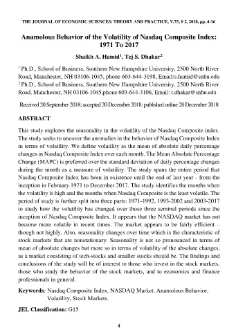 THE JOURNAL OF ECONOMIC SCIENCES: THEORY AND PRACTICE, V.75, # 2, 2018, pp. 4-16