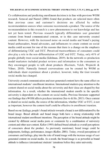 Co collaboration and predicting enrollment decision is in line with previous WOM