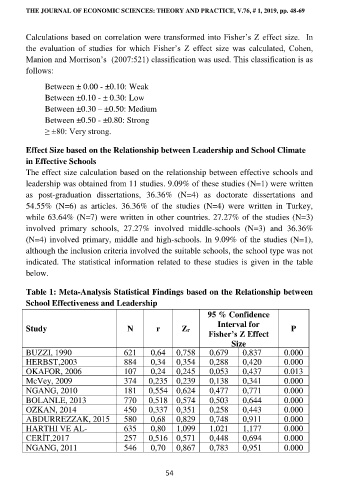 the evaluation of studies for which Fisher’s Z effect size was calculated, Cohen,