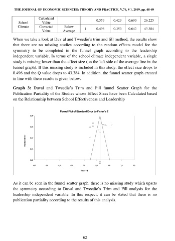 Graph 3: Duval and Tweedie’s Trim and Fill funnel Scatter Graph for the