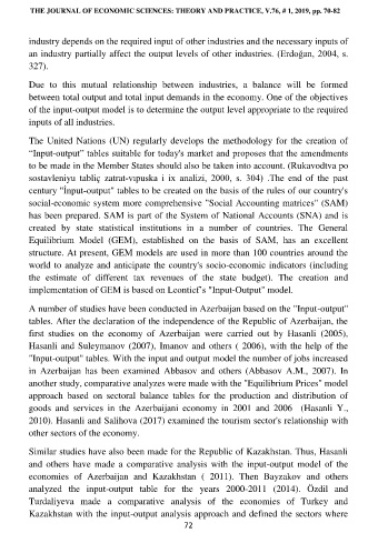 THE JOURNAL OF ECONOMIC SCIENCES: THEORY AND PRACTICE, V.76, # 1, 2019, pp. 70-82