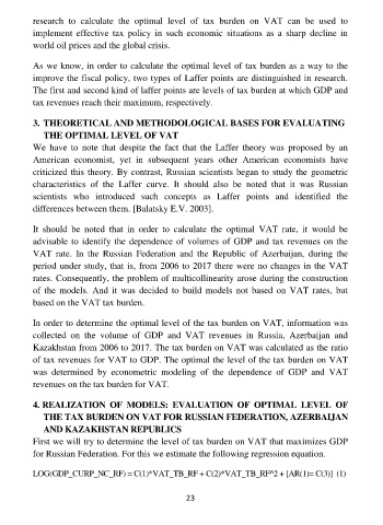 collected on the volume of GDP and VAT revenues in Russia, Azerbaijan and